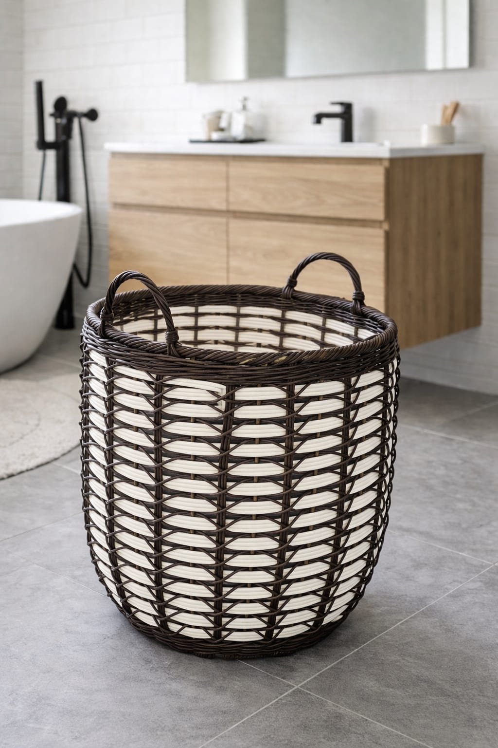 SKU: HG2504238x41cmBlackPolyrattanbasketforlaundryorpotholder-1 Categories: ,